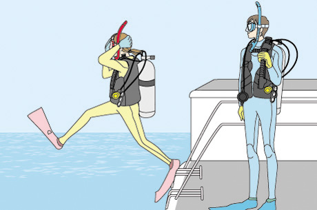 ひと口にボートといっても、和船やクルーザー、ゴムボートなど、タイプはさまざま。どんな状況でも慌てずにボートダイビングが楽しめるよう、ボートからのエントリー&エキジット法や器材のまとめ方、船酔いの防止法などをこのコースで学んでおきましょう。