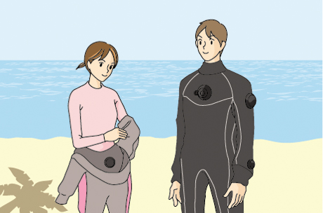 体を濡らさず快適なダイビングが楽しめるドライスーツ。