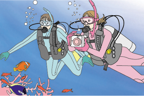 今や陸上でも水中でも広く普及しているデジタルカメラ。このコースに参加することで、撮影環境に応じた設定に素早く調整できるようになり、構図にもこだわった写真が撮れるようになります。